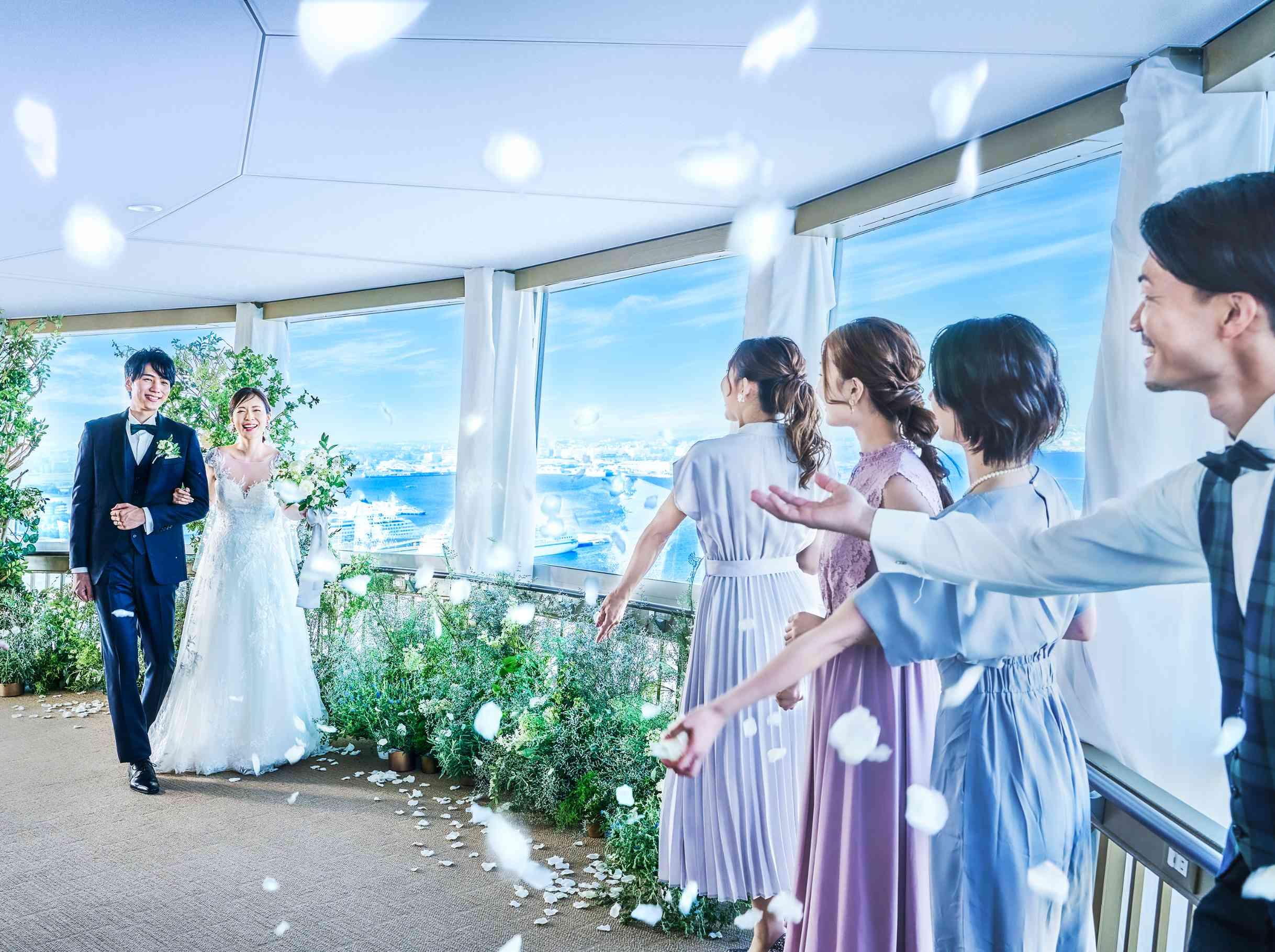 【唯一無二の横浜マリンタワー】360°思い出の街に囲まれてのセレモニーはゲストにとっても忘れられないひとときに。エレベーターで上がる瞬間からわくわくしてもらえるはず(参列:30~80名)