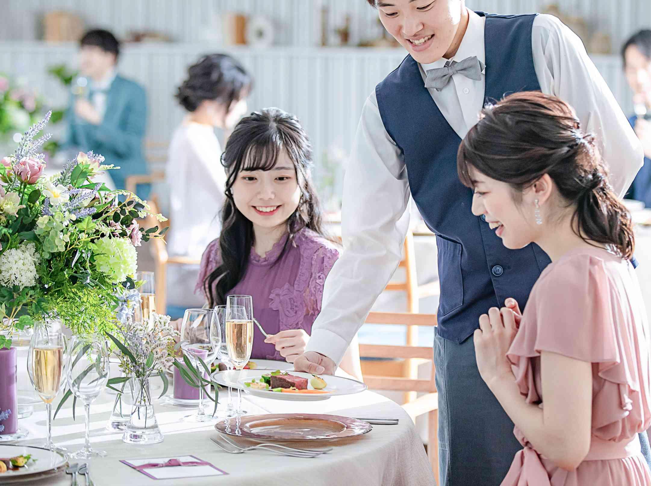 おふたりの想いのこもったオリジナル料理でおもてなしパーティ。ゲストとの距離も近く一人ひとりとの会話もはずみ、リラックスしながら食事会を楽しむことができる。