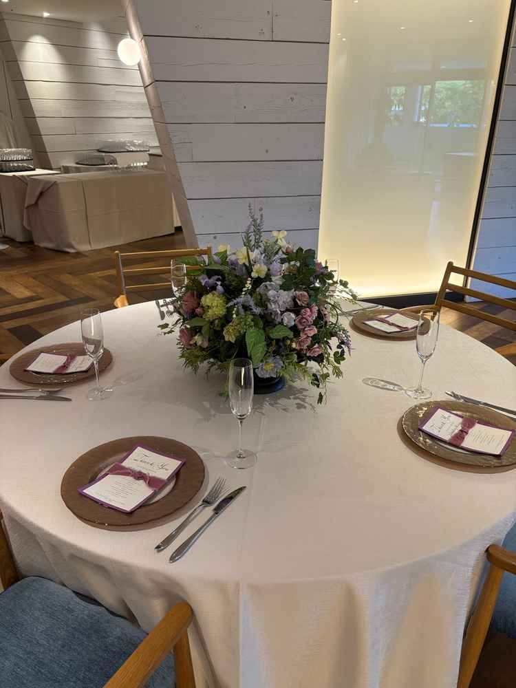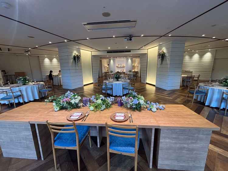 披露宴会場にある太い柱二本が気になったが、その分スクリーンが3つあったり新郎新婦の席からはゲストの皆さんが見えるような配置の工夫があった。