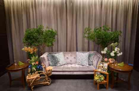 お二人のメイン席はトレンドのソファ席。ゲストの皆様との距離を近くすると思いを込めてソファ席にされたお2人。会場の装飾にもミラーやキャンドルを設置し、非日常的な雰囲気を作り上げられた。お写真スポットとして皆様に来ていただけるよう、ウェディングツーリーやお花にもこだわられた。その中でも装飾グッズをお持ち込み頂きお二人らしさも忘れない。