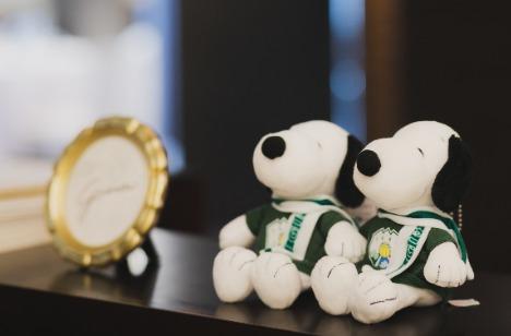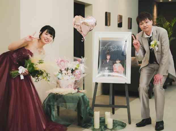 おふたりの趣味はサッカー観戦。元々ご新郎様がサッカーが大好きだったようで、ご新婦様も影響され今ではおふたりでユニフォームを着て応援に行かれるそうです。 ウェルカムスペースにもそんなおふたりらしさが溢れています。 なんと受付台にはFC岐阜のユニフォームを着たスヌーピーが。 フロア貸切でのご結婚式がおふたりの世界を演出します。
