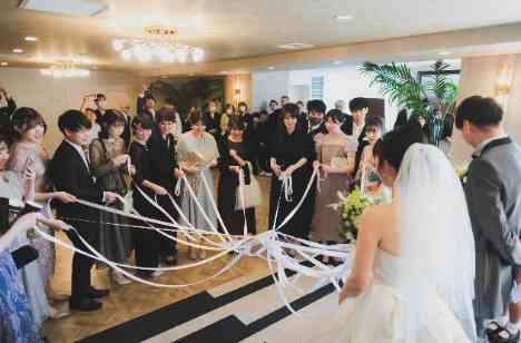 挙式が結んだあとは、お待合スペースでゲストの皆様とのお時間。 ご友人様をお呼びしてブーケプルズを行いました。 参加をされていないゲストの方も、「どなたが当たるのか」とカメラを構えています。ゲストの皆様と近い距離で1日を過ごしたいと仰っていたおふたり。 「ご結婚式の1日に皆様が楽しんでいただけるよう」とおふたりがご準備をした素敵な演出やお時間。会場には笑顔が溢れます。