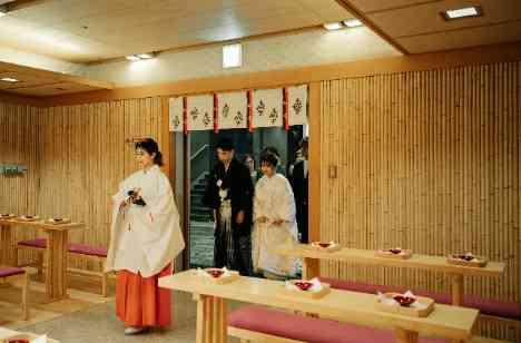 どんな形でも大切な人たちと繋がっていられるように。そんなおふたりが選んだ挙式は神殿式。 当会場の本格的な神殿にてゲストと一体となった温かい空気が広がるとても感動的なひとときをお過ごしいただきました。 こちらのお写真にあるのは花嫁行列の瞬間。長良天神の巫女様の後ろに続いて歩かれているお2人は“夫婦になる”ことを実感されたようないつもとは違う素敵な表情をされていらっしゃいました。