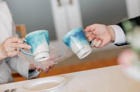 引き出物や引菓子を実際に手に取って選んでいただけるアイテムフェア“サンジョルディコレクション”でおふたりが選ばれたのは『つながりのマグカップ』。ご家族とのつながりを大切にされているご新郎様ご新婦様にまさにぴったりの引出物です。 オーダーメイドで作られた世界にひとつだけの器は、ゲスト同士でデザインがつながっており、おふたりの想いと家族の絆を感じさせる特別な贈り物でした。