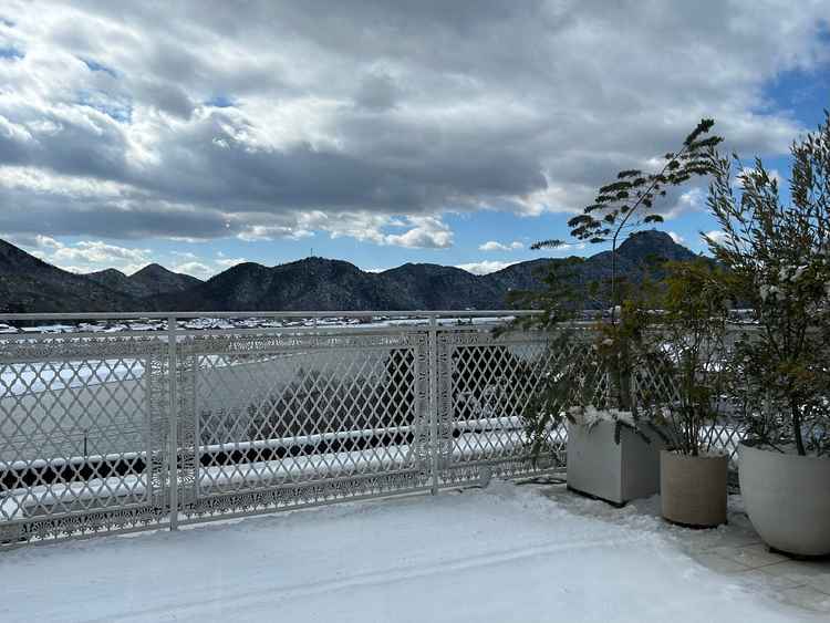 会場によって意外に天井が低いと感じる場所もありましたが、3箇所から選べるので、選択肢があるのがよかったです。また、長良川と金華山がよく見える落ち着いた景色ですが、見学日は雪が積もっていたためより一層綺麗でした。