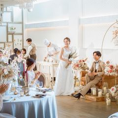 【ナチュラルな色合いのフロアに白亜の壁面が印象的なパーティースペース】◆サプライズ演出やアットホームな演出◆おふたりのご希望に合わせて本番さながらの演出を体験♪≪10周年記念!最大150万円優待≫