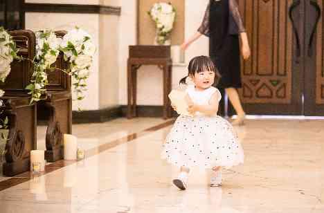 ファーストミートも行い、リングガールとしても大活躍! 誓いのキスもお二人からのご指名で行いました! 初めての結婚式だからこそ、沢山の思い出を作り実行しました。 リングガールの登場のシーンは、パパとママのところまでダッシュ! 誓いのキスは恥ずかしながらも微笑ましい感じで、すごく素敵な瞬間でした。