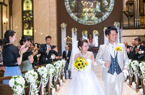 本格的な大聖堂での教会式。 厳かな雰囲気の中式を行いました。 裕代さんの大好きなひまわりのブーケが印象的でした♪