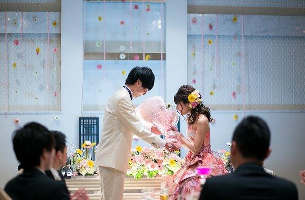 結婚式を迎えるにあたり、親御様に一番感謝の気持ちを伝えたい、 と教えてくれました。 挙式直前新郎さんから親御様へサプライズで今までの感謝の気持ちを込めお手紙を読みました。また、新婦さんはお母様へサプライズでベールダウンを行って頂き、夢であったお父様とバージンロードを歩きました。