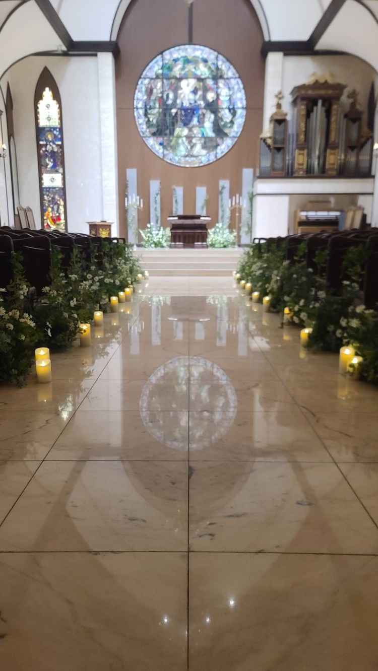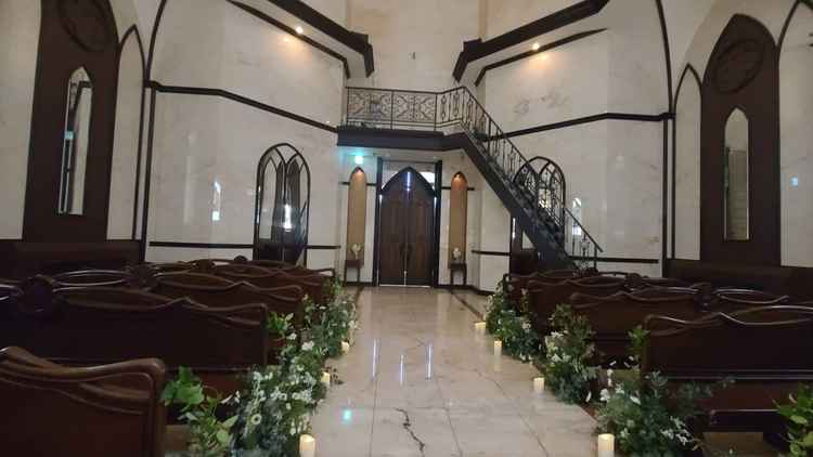 チャペルが荘厳。ステンドグラス、大理石とそれに合った照明・演出で、式場の良さ生かす工夫がされていました。挙式当日にこの演出されたら素直にうれしいと感じるものでした。