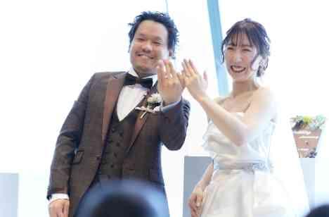 最高の笑顔でバージンロードを歩むお二人の姿はゲストの皆様にとっても嬉しい瞬間、大空のように喜びに満ちた笑顔が見守ります。お二人らしい誓いの証として、結婚証明書は皆様のご署名もいただきながらゆかりのある音楽のアイテムへ。フラワーシャワーが華やかに舞うなか、大好きな皆様に囲まれて笑顔いっぱいの門出のときを迎えられました。