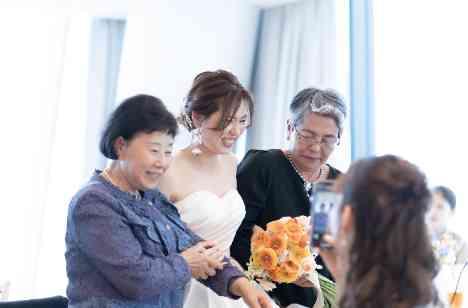 結婚式は見守り続けてくださったご家族へこれまでの感謝をお伝えする機会に。お祖母様・ご兄弟との中座シーンは見守る皆様にも伝わるほどの愛情に満ちた幸せあふれる時間。手を取りあゆむ姿はどこか懐かしいあたたかい光景です。ご両家お母様の思い出の味をイマージュしたエピソードレシピは、お二人の想いも込めた感謝のおもてなしです。