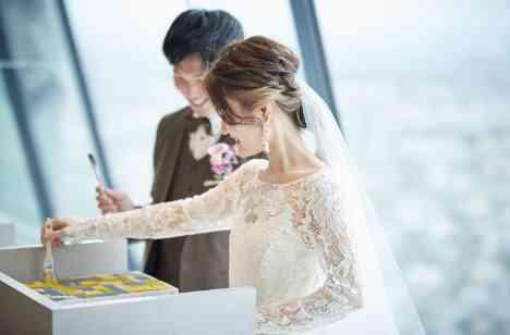 大理石のバージンロードから繋がる大空や一面に広がる地上180Mのパノラマビュー、お二人の結婚式に訪れた方だけが堪能できるこの日だけの特別なオリジナルメニューなど、たくさんの非日常があふれる一日。おしゃれなドレススタイルやBGMなどお二人のこだわりも大切にしながらアットホームに過ごす結婚式をご紹介します。