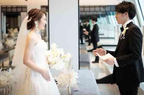 訪れた特別な日の幸せをお二人だけで愉しむファーストミート。扉が開くと、新郎様の目の前にウェディングドレスに包まれた新婦様が。素敵な笑顔で歩む新婦様を大理石のバージンロードが映し出し、一層の美しいシーンが広がります。喜びも感動も心いっぱいに、手紙で気持ちをお伝えされる新郎様に新婦様の優しさが寄り添います。