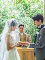大切なゲストの前で永遠の愛を誓う指輪交換のセレモニー。祭壇の緑豊かなガーデンを背に、生演奏が響く空間で優しい自然光に照らされながらのセレモニーは、より一層幻想的な空間に。ゲストとの距離感も近くアットホームな結婚式が叶う貸切チャペル!