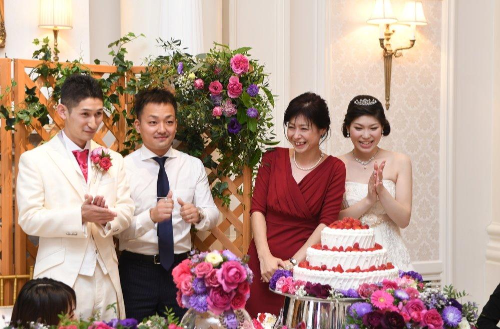 司会者からではなく親御様からお二人のプロフィール紹介 友人スピーチに突撃インタビュー 誕生日のゲストにケーキを食べさせてあげるバースデーバイト また、バースデーデザートプレートをお二人から直接渡していただきました。 ゲストと新郎新婦が近い距離でお楽しみ頂けるご披露宴となりました。
