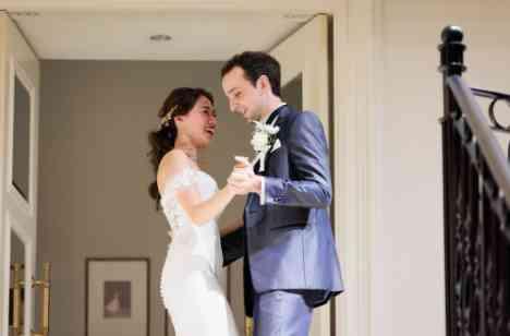 ウェディングドレスでのご入場は階段からロマンティックな入場にしました イギリスの結婚式では行うことの多いダンスを取り入れ階段上のバルコニーにてダンスを行いました 海外のドラマを見ているようなとてもロマンティックな時間となり見とれてしまうようなお時間です 会場の照明も少し落としお二人にスポットが当たることでより素敵な雰囲気になりました