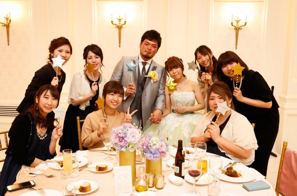 新郎のこだわりはゲスト参加型、新婦のこだわりはゲストへの感謝 新郎はお色直しだけでなく、入場のエスコートもして頂き、ゲスト と触れ合う時間をつくりました 新婦はお姉様と妹様にお揃いの星のアクセサリーをプレゼントしたり、ゲストが楽しめるように手作りスタープロップスを作ったりしました