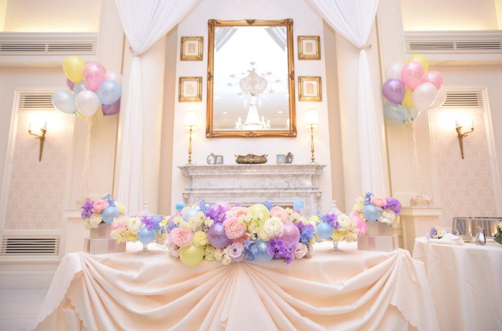 テーマの縁(えん)を視覚でも感じていただけるよう円(えん)の形をしたバルーンを装飾に使用しました。 これまでのご縁を感じ、感謝を伝えることが出来るような温かい雰囲気がご希望でしたので、パステルカラーの暖色系を中心にでコーディネートいたしました。