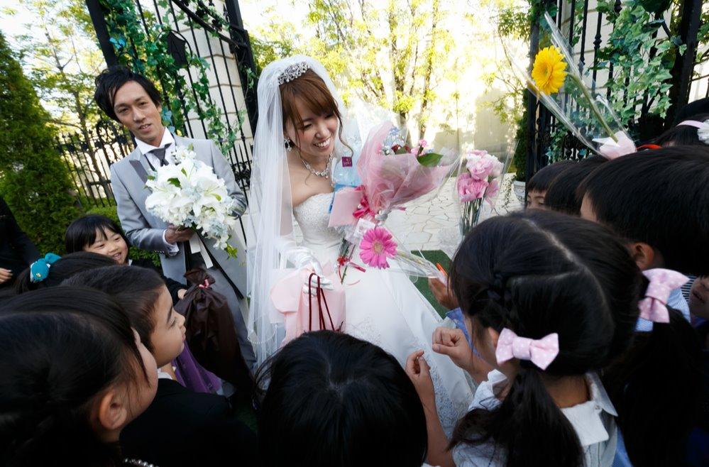 幼稚園の先生の新婦様でしたので、教え子をガーデンセレモニーへお招きいただきました。いつもとは雰囲気の違う先生を前に、教え子の皆様も嬉しそうでした。お写真タイムや教え子の皆様からのプレゼントのお渡しはとても和やかなシーンとなりました。
