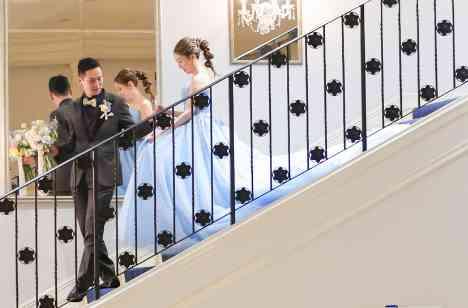 お気に入りのカラードレスでの階段からの登場。こだわった登場曲に合わせて、ゲストの皆様とスタッフも手拍子でお迎え。会場のボルテージも最高潮。音楽フェスがお好きなこともあり、しっとりとしたロマンチックな楽曲ではなく、ゲストの皆様を一緒に盛り上がれるような楽しい楽曲を選ばれました。ゲストの皆様にとっても印象に残るワンシーンとなりました。