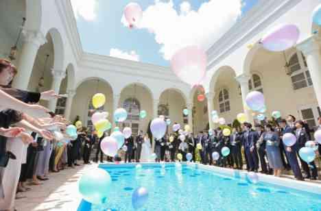 とても楽しみにされていたバルーン演出。ゲストの皆様の反応もとても良く、お二人の結婚式での思い出として皆様の記憶に刻まれました。アーセンティア迎賓館ではプールをぐるっと囲えるような大きなガーデンが特徴のひとつです。当日はお天気にも恵まれてとても素敵な写真を残すことも出来ました。お二人への祝福の気持ちや、永遠の愛など思い思いの願いを込めてトスして頂きました。