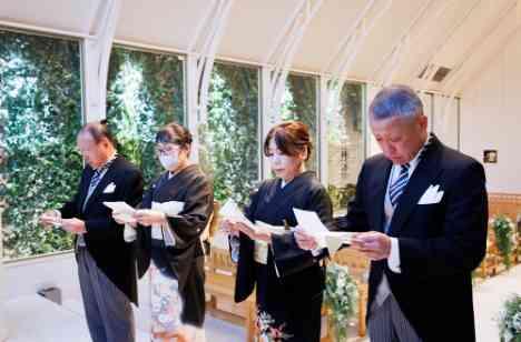 挙式前の、少し緊張するご家族とのファミリーミート。そんなお時間をご用意されたおふたりは、親御様おひとりおひとりに今までの感謝の気持ちをお手紙に綴っていただきました。ご対面前にお手紙読んだ親御様は、今までのおふたりとの思い出を振り返っていただきご対面の際には主まず涙があふれる一面もあり、暖かなお時間となりました。