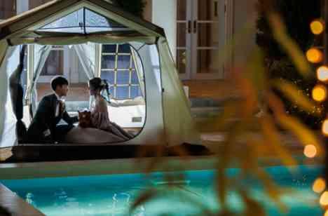 より非日常感を感じていただける夜のガーデン。その中におふたりの共通の趣味であるキャンプグッズを沢山詰め込みました。どちらのご家族もキャンプに良く行っていたということでご家族皆様キャンプ好き!ご家族皆様揃ってキャンプ好き!フォトブースとして当日はゲストの皆様はお昼のお時間も夜のお時間もゲストの皆様はフォトブースの周りに集まりお話やお写真撮ることを楽しまれていました。