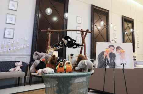 ブライダルフェアの時から会場を動物園のような雰囲気にしたい!というお気持ちがあったおふたり。おふたりが持っている動物のぬいぐるみを飾り、ゲストへのエスコードカードにも一人ひとりをイメージした動物たちが…!毎回のお打ち合わせでロビーの雰囲気を聞いたり、ご提案させて頂いたりしながら実現できたスペースとなっております。