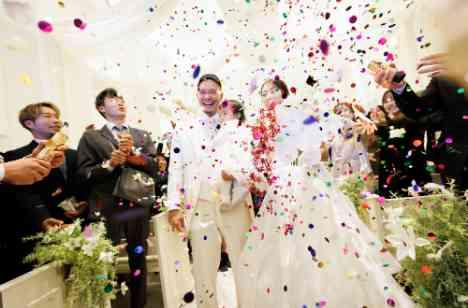 普通のフラワーシャワーではなくより素敵に大好きな皆様に囲んでいただきながらコンフェッティシャワーを行いました みんなに囲んでもらいながら行うからこそより幸せな空間になり素敵なお写真も残すことができます アーセンティア迎賓館のホワイトハウスの純白のチャペルだからこそカラーのコンフェッティがよりきらきらとお二人の門出に彩を加えます