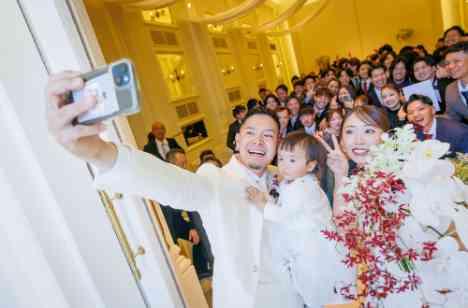 挙式のラストは通常の退場ではなくゲストの皆様と一緒にインカメで撮影をしました 結婚式ではなかなか撮影することのないおふたり目線のお写真を撮影しゲストの皆様との大切な皆様との思い出のお写真を残していただきました 今までにない演出にゲストの皆様は驚きながらも暖かいカジュアルな雰囲気にとても素敵なお写真を残すことができました