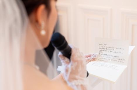 挙式の入場前には大好きな皆様に向けてご新婦様からお手紙をご自身の声で伝えていただきました お手紙の中にはバージンロードの意味やベールダウンの意味を伝える内容を入れていただき親御様にもしっかりご自身の思い出と共に意味を伝えていただきました しっかり意味が伝わり思いも伝わっているからこそとても素敵な挙式の入場シーンとなりました