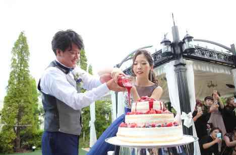 ガーデンでケーキ入刀・ファーストバイト・デザートブッフェを行いました。新郎新婦とゲストの距離が近く、お写真も映える素敵な空間となりました。アットホームな披露宴にしたい・ゲストと一緒に何かをしたいという方にはお勧めの演出です