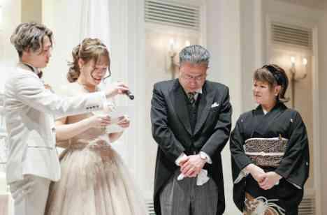 ご結婚式当日まで披露宴会場のはじとはじで想いを伝える予定でしたがご家族様の温度もお二人の温度もとても熱くより近い距離で想いを伝えられたらと思い親御様のお隣でご新婦様からのお手紙を読んでいただきました ご結婚式の間ずっと涙を我慢されていらっしゃったお父様ですがより近くでお手紙を読みご新婦様の温度感を感じることができ涙をされるお姿がとても印象的でした