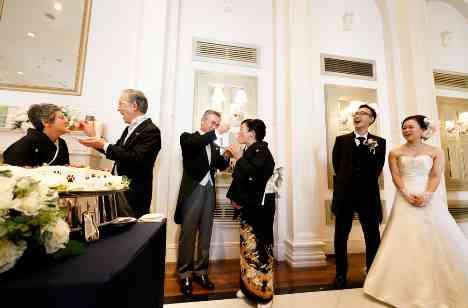 家族、親族で行うFamily Weddingでもありました。 できる限り、ゲストの皆様にご参加いただき、参加型Weddingに。 両家親御様にはお手本バイトをして頂き、会場盛り上げていただいたり、 ドレス当てクイズをしたり、老若男女問わず楽しんでいただけました。 どんなご希望も叶えることができる会場です。