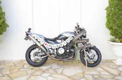 新郎の愛車のバイクをガーデンにセッティング。 フォトブースとしてゲストの皆様に楽しんで頂いたり、 バイク仲間の友人たちからメッセージを記入していただきました。 さらにゴープロを設置してゲストが会場に来る様子や愛車にメッセージを記入する姿を撮影。