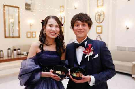 ゲストの方からも要望を頂いた、デザートブッフェではなくラーメンブッフェで披露宴後半もお楽しみのご演出を用意いたしました。 ブッフェスタートの合図はおふたりから。 一緒にトッピングをしながらゲストとのふれあいを楽しんで頂きました。 ゲストの方々と触れ合いながらトッピングをするおふたりはさながらラーメン屋さんでした。