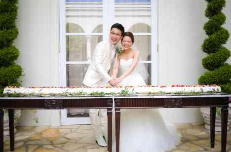 お付き合いから結婚式までの長さを表現したいと思い、 2,606日の日数を長さし、2m60.6cmの長さのロングウェディングケーキをオリジナルでご準備し、ケーキ入刀して頂きました。 その後両家親御様も一緒に仲良くケーキバイトをし、ゲストも大盛り上がりの演出となりました。