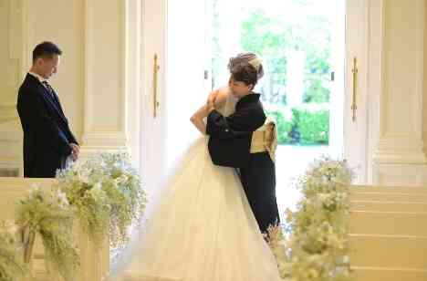挙式前にちゃんと親御様にありがとうをお伝える時間をお作りしました。新郎お父様からの二人で頑張ってねという力強いメッセージには、新郎様は涙されていました。 挙式入場前には感謝の映像をチャペルにて上映し、バージンロードの意味をお伝えした上で挙式をスタート致しました。お母様からのベールダウンの際には、お母様からの温かいメッセージとHugがあり、感動的な入場シーンとなりました。