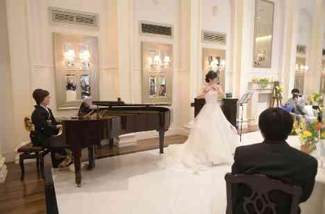 新婦様はフルート、新郎お母様はピアノを演奏しており結婚式で初めて演奏することに。 一緒に合わせることができたのは前日の1日のみでした。 当日緊張しているおふたりでしたが、素敵なメロディーを奏でてくださいました。 新しい家族との絆が深まった瞬間です