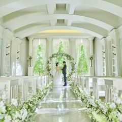 【ホワイト×グリーンのチャペル】当日の花嫁気分を味わえる!華やかであたたかい雰囲気で本番さながらの挙式体験を♪◎ゲストとの距離が近いのも魅力◎初めての見学で挙式料優待付