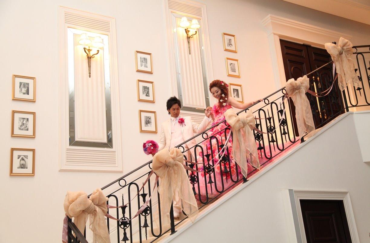 パーティ会場にある階段からお色直し入場!夢が叶いました