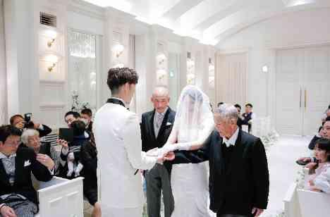ご新婦様のことをたくさん可愛がってくれたおじい様。挙式の所作には全てに意味があります。お身体のご負担を考え、未来を一緒に歩んでいくご新郎様へのバトンタッチのシーンだけご登場いただきました。貸切ならではの挙式会場を実際に使用した挙式リハーサルにもおじい様にご参加いただき、安心して本番を迎えていただけましたし、本番はとても温かい時間となりました。