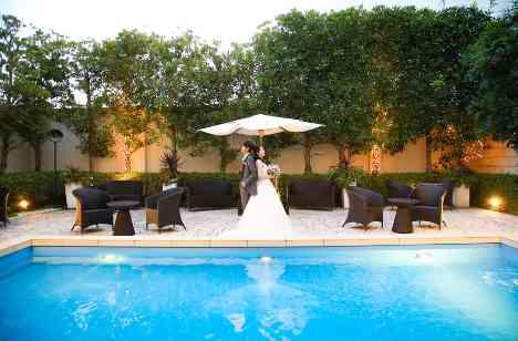 「ご家族様を楽しませたい!」という想いをお持ちなおふたりはご入場にワクワク感を取り入れました。ご披露宴会場の扉口ではなく、プール付きのプライベートガーデンからのサプライズ入場はご家族様が笑顔でおふたりに手を振って喜んでいらっしゃいました!