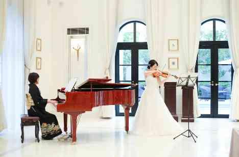 ご新婦様が音楽をお仕事にされているのは、大切なお母様がピアノの弾き方、音楽の楽しみ方を教えてくれたからです。「今の自分があるのはお母さんのおかげ。」そんな感謝の想いを込めて、ご一緒に演奏をご披露されました。