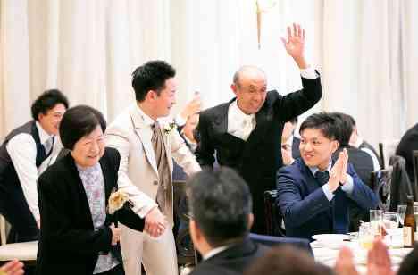 大切なおじい様とおばあ様には、これからも笑顔で元気に長生きしてほしいという想いがありました。お色直しのご中座は、そんなおじい様とおばあ様とご一緒に歩まれました。ご新郎様にお呼び出しされたことが嬉しかったおじい様は、ゲストの皆様の間を手を挙げながら最高の笑顔で歩いてくださいました。