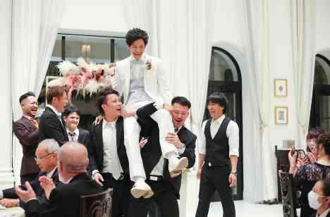 堅苦しくなく、ラフな結婚式がしたいとご見学時からお話されていたお二人。特に、ご友人様とのお時間を大切にされていらっしゃいました。それぞれのご友人様のスピーチや、盛り上がるご余興を取り入れました。ご新郎様は学生時代、長い時間を共にしたサッカー仲間の皆様とご中座。