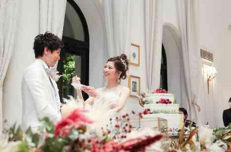 ご新婦様のこだわりの詰まった装飾は、ナチュラルな中にも色味がはっきりとあり、ドレスとの相性ばっちりでした。装飾・ドレス・ケーキすべてのトータルデザインが叶うのも貸切だからこそ。ファーストバイトは、あえて新郎様から新婦様に大きなスプーンで、新婦様から新郎様にミニスプーンでお贈り頂きました。ゲストからもつっこみと歓声が上がるシーンとなりました。