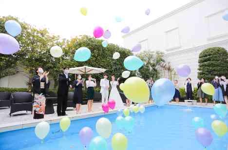 テーマカラーに合わせてバルーンをご用意いたしました。大切なゲストの皆様が集まるガーデンでサプライズ演出♪空に上がるバルーンはとてもお写真映えします。お写真を撮ることが好きなご友人様たちも沢山お写真に残していました!