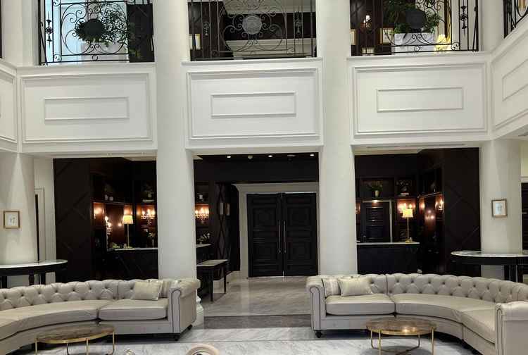 白を基調とした王道の結婚式場といった雰囲気。披露宴会場に階段やプール付きの庭が併設されている点は魅了的に感じた。